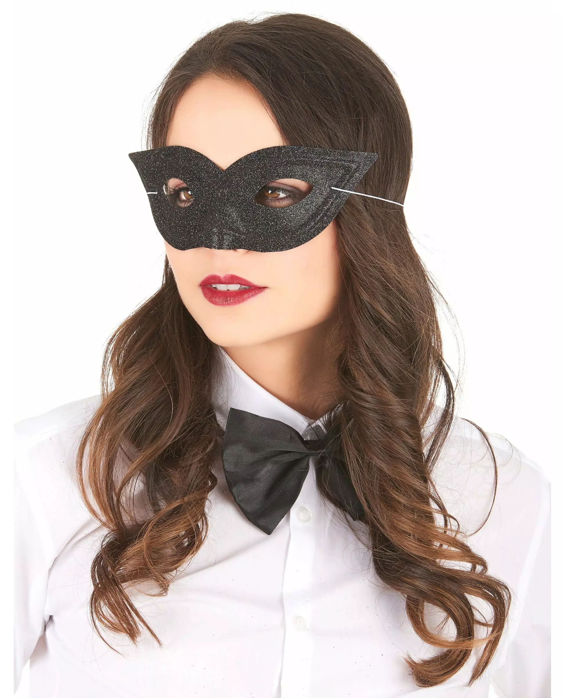 Svart, paljettbesatt venetiansk øyemaske for voksne inkluderer: Øyemaske.