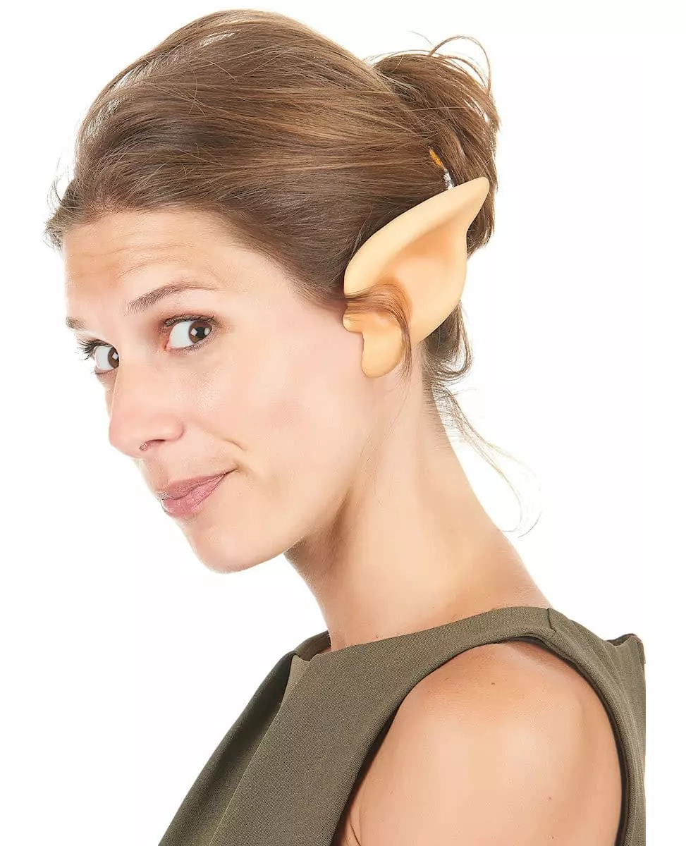 Hør her! Dette paret med myke PVC-ører er for voksne og representerer alv- eller goblinører. De er lys beige i fargen og plasseres enkelt over ørene. For å endre stilen din og fullføre skogsdyr- eller julealvkostymet ditt, vil disse søte ørene være perfekte for å gjøre et inntrykk! Materiale: PVC