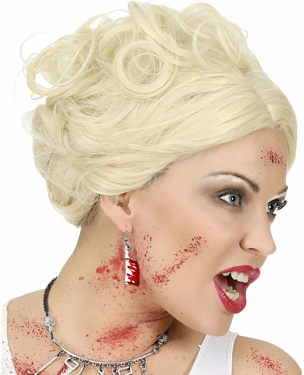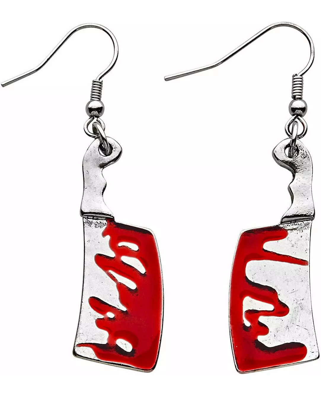 Gi ørene dine litt stil til Halloween Disse blodige økseøredobbene er for voksne. De forestiller økser fylt med blod. De vil være perfekte som tilbehør til kostymet ditt på Halloween-kvelden. Inkludert tilbehør: Øredobber
