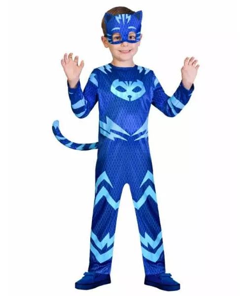 Jojo-raskt! Dette jojo-kostymet for barn er offisielt lisensiert av Pyjamasques ™. Det består av en maske og en jumpsuit med hale trykt foran. Jumpsuiten med lange ermer er helt blå, med et logotrykk (et kattehode) og himmelblå lynmønstre som representerer en av superkreftene (fart, skarp hørsel og evnen til å lande på beina) til denne lille superhelten. For en trofast gjengivelse av denne tegneserien er denne jumpsuiten også utstyrt med en kattehale. Masken representerer ansiktet og ørene til en katt og har to store åpninger i øyehøyde for god synlighet. Den vil være det essensielle tilbehøret for å opprettholde anonymitet ved mørkets frembrudd! Med denne komplette forkledningen vil barnet ditt kunne legemliggjøre sin favoritthelt og sikre alles sikkerhet under bursdagsfester, kostymefester eller karneval!. Inkludert tilbehør: Jumpsuit Maske Materiale: 100 % polyester Stell: Håndvask