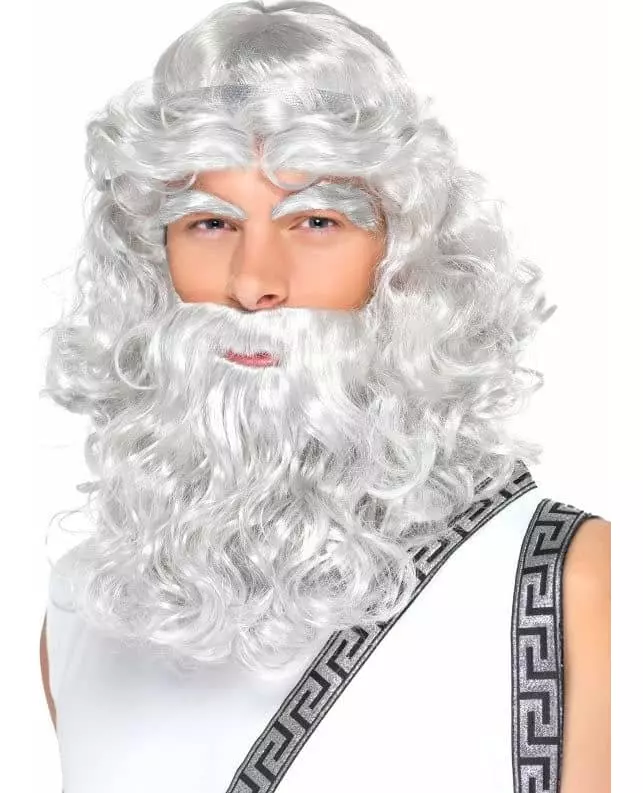 Føl deg som en gresk gud på et blunk! Denne parykken med skjegg av den greske guden Zevs leveres med to selvklebende øyenbryn. Den er det perfekte tilskuddet til et kostyme av den mytologiske figuren til karneval eller en temafest. Gjør deg klar for en fantastisk fest! Inkludert tilbehør: Parykk/skjegg 2 øyenbryn Materiale: 100 % polyetylen 100 % polyetylen