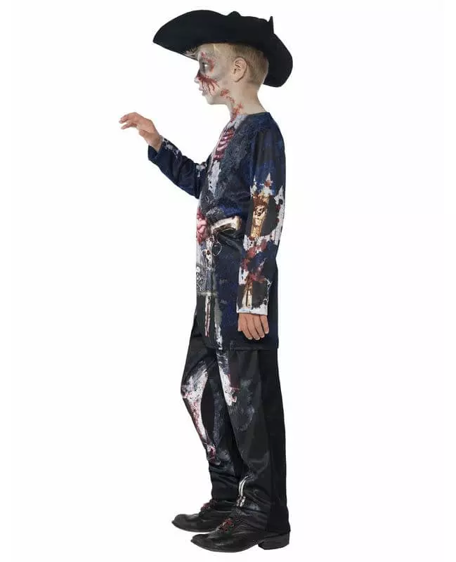 Alle om bord, sjømenn, zombiene kommer! Dette piratzombiekostymet for barn består av en tunika, bukser og en hatt (sabel, linser og sko er ikke inkludert). Den midnattsblå tunikaen har lange ermer og er enkel å ta på ovenfra. Den er trykt for å skape en illusjon med en revet skjorte, et piratbelte og et brystkasse som drypper av blod. Innvollene er også synlige for å skremme alle forbipasserende; barnet ditt vil garantert bli lagt merke til. De mørkegrønne og svarte buksene avslører også bein og blod for en garantert zombieeffekt. Den svarte hatten vil fullføre dette udøde piratutseendet. Barnet ditt vil se perfekt ut denne Halloween i dette fantastiske, realistiske zombiepiratkostymet for barn. Inkludert tilbehør: Tunikabukser Hatt Materiale: 100 % polyester Vedlikehold: Håndvask