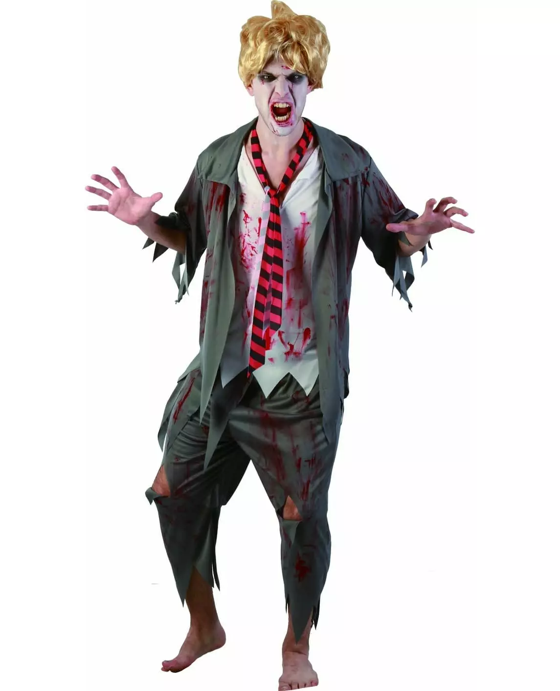 Våkn opp fra den lange søvnen og gå på en zombietur i gatene. Dette zombiekostymet for menn består av en topp, bukser og et slips. Den hvite og grå toppen vil gi illusjonen av at du har på deg en hvit t-skjorte og en grå jakke. For å gi en slitt effekt er bunnen av ermene og toppen kuttet i punkter. Falske blodflekker gir et makabert preg til antrekket. De grå buksene er farget med falskt blod på forsiden. De er kuttet i punkter nederst og åpne ved knærne. Disse buksene har en elastisk linning for ekstra komfort. Til slutt fullfører et svart og rødt slips dette kostymet. Dette slipset er et bredt stripete pannebånd som knytes rundt halsen. Dette kostymet vil være perfekt for å forvandle deg til en udøde for en zombietur eller for å feire Halloween. Inkludert tilbehør: Topp Bukser Slips Materiale: 100 % polyester Pleie: Håndvask